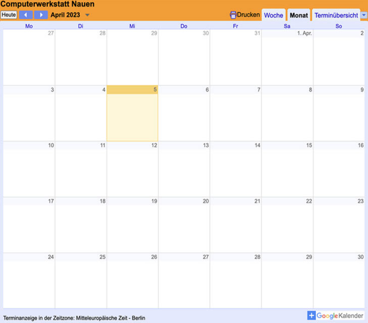 Mit Ihrer Zustimmung wird hier ein externer Kalender von Google geladen,