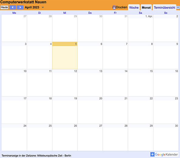 Mit Ihrer Zustimmung wird hier ein externer Kalender von Google geladen,